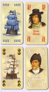 Pour aider les bateaux, il existe des cartes spéciales (1 par couleur et une blanche) représentant de vrais pirates et un amiral. Un pirate va aider une pile de bateaux pirates engagés dans une bataille et cette pile sera toujours la plus forte, sauf si l'adversaire joue aussi un pirate ou un amiral (qui défend les galions directement). Le dernier à parler gagne.